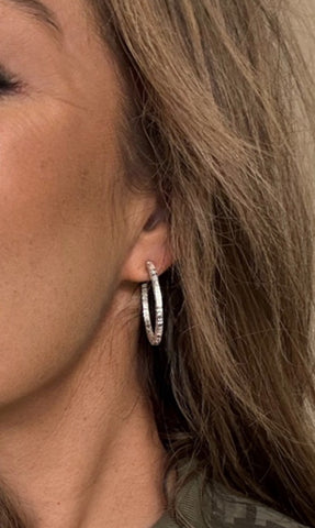 Timeless, versatile, and full of character — these gorgeous medium-sized sterling silver hoops are your new go-to earrings for any occasion. Each pair is hand-stamped on all four sides, showcasing artisan craftsmanship in every detail.