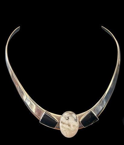 Sterling Silver Choker with Black Onyx & White Buffalo Turquoise
