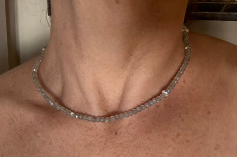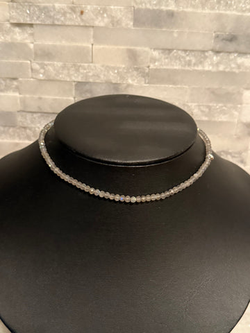 Gray Moonstone Faceted Beads & Sterling Silver Choker