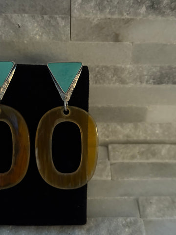 Turquoise & Water Buffalo Horn Dangle Earrings
